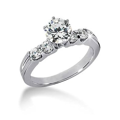 The 14K White Gold Round Cut Diamond Ring from Amcor Design is brilliance and elegant Diamond Engagement Ring. The total weight of all diamonds is 1.10 carts andI1-12 clarity with HI in color.All natural diamonds are set in Solid 14kt white gold.