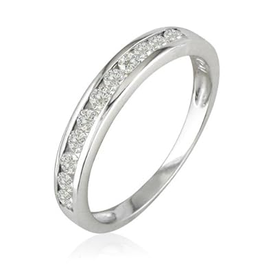 This 10K White Gold Round Diamnd Z1/4ct tw.J/K 12) is classic ladies Diamond Anniversary Ring from SuperJeweler. The diamonds is set in solid 10 karat white gold and may come with 9 or 11 diamonds that vary to diamond sizes. However the total weight, regardless of diamond count, will always be 1/4ct.